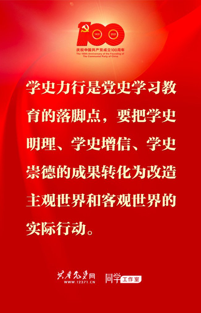 2021年4月,习近平总书记在广西考察时指出,广西红色资源丰富,在党史学习教育中要用好这些红色资源,做到学史增信。学史增信,就是要增强信仰、信念、信心,这是我们战胜一切强敌、克服一切困难、夺取一切胜利的强大精神力量。 要增强对马克思主义、共产主义的信仰,教育引导广大党员、干部从党百年奋斗中感悟信仰的力量,始终保持顽强意志,勇敢战胜各种重大困难和严峻挑战。 要增强对中国特色社会主义的信念,教育引导广大党员、干部深刻认识到,中国特色社会主义是历史发展的必然结果,是发展中国的必由之路,是经过实践检验的科学真理,始终坚定道路自信、理论自信、制度自信、文化自信。 要增强对实现中华民族伟大复兴的信心,教育引导广大党员、干部牢记初心使命、增强必胜信心,坚信我们党一定能够团结带领人民在中国特色社会主义道路上实现中华民族伟大复兴,努力创造属于我们这一代人、无愧新时代的历史功绩。 信仰、信念、信心是最好的防腐剂。要始终抓好党风廉政建设,使不敢腐、不能腐、不想腐一体化推进有更多的制度性成果和更大的治理成效。 涵养高尚的道德品质 一要崇尚对党忠诚的大德,广大党员、干部永远不能忘记入党时所作的对党忠诚、永不叛党的誓言,做到始终忠于党、忠于党的事业,做到铁心跟党走、九死而不悔。 二要崇尚造福人民的公德,广大党员、干部要站稳人民立场,始终同人民风雨同舟、生死与共,勇于担当、积极作为,切实把造福人民作为最根本的职责。 三要崇尚严于律己的品德,广大党员、干部要慎微慎独,清清白白做人、干干净净做事,努力做一个高尚的人、一个纯粹的人、一个有道德的人、一个脱离了低级趣味的人、一个有益于人民的人。 要建设忠诚干净担当的高素质专业化干部队伍,继续加强党风廉政建设,一体推进不敢腐、不能腐、不想腐,确保党的肌体健康。 将学习成果转化为实际行动 2021年7月,习近平总书记在西藏考察时强调,学史力行是党史学习教育的落脚点,要把学史明理、学史增信、学史崇德的成果转化为改造主观世界和客观世界的实际行动。 要在锤炼党性上力行,教育引导广大党员、干部发扬党的光荣传统、赓续红色血脉,用伟大建党精神滋养党性修养,坚定理想信念,不断提高政治判断力、政治领悟力、政治执行力,胸怀“国之大者”,始终用党性原则修身律己,切实以坚强党性取信于民、引领群众。 要在为民服务上力行,教育引导广大党员、干部始终把人民放在心中最高位置,当好人民群众的知心人、贴心人、领路人,用心用情用力解决好群众急难愁盼问题,努力推动全体人民共同富裕取得更加明显的实质性进展。 要在推动发展上力行,教育引导党员、干部把学习党史同推动工作结合起来,坚持求真务实、担当作为,创造性落实党中央决策部署,着力破解发展难题、厚植发展优势,努力做出无愧于党和人民、无愧于历史和时代的新业绩。 |