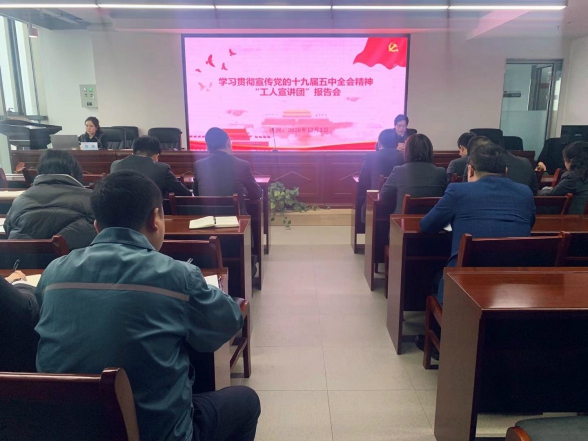 12月3日下午,由市国资委组织的十九届五中全会精神“工人宣讲团”来我公司进行宣讲。会议由国资公司党委副书记张浩主持,副总经理崔建新、王丹、王军武、庞虎、副总会计师王建军参加。 本次报告会邀请西凤酒厂集团宣传部副部长杜杰、宝鸡天健医药公司仁和分公司党支部副书记、副经理曹侠做主题宣讲。报告会上,宣讲人从“五年规划的重大意义”“十三五经济社会发展成就回顾”“十四五编制历程”“十四五时期民主领域举措”“五中全会释放未来中国发展重要信号”等多方面,对全会精神进行系统宣讲和深入阐述。 最后,党委副书记张浩作总结讲话。他指出,学习贯彻十九届五中全会精神是公司党委及全体党员干部当前一项重要政治任务。他要求,公司党员干部,要提高思想认识,尽快适应时代发展要求、适应公司发展要求,坚持目标导向和问题导向相统一,锻长板、补短板、强弱项,结合各自岗位,谋划好部门工作,实现国资公司稳健、高质量发展。 国资公司机关第一党支部、机关第二党支部、正能物业党支部、华康支部、四通支部共计40余名党员参加了本次报告会。
