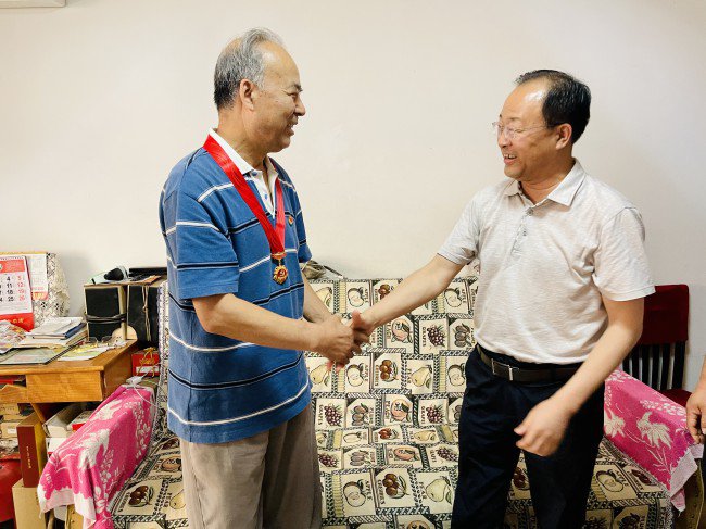 慰问组一行先后走进老党员张斌、王天祥家中,亲手为他们佩戴由中共中央颁发的“光荣在党50年”纪念章,关切地询问他们的生活起居和身体健康状况,与他们共忆峥嵘岁月,共话美好未来。