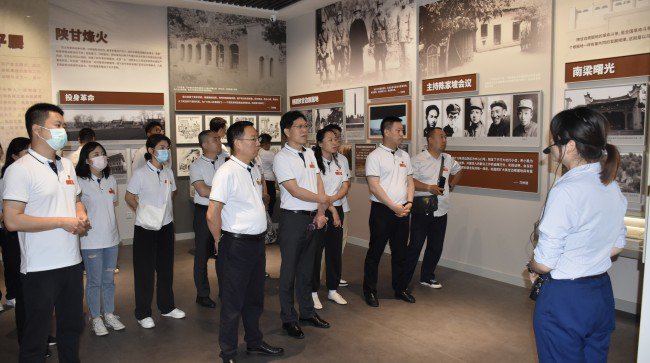 在凤县革命纪念馆大厅,党员干部怀着无比崇敬的心情向两党兵变主要领导人习仲勋等雕像敬献花篮、肃立黙哀致敬,深切缅怀老一辈无产阶级革命家的崇高品质和革命精神。在庄严肃穆的气氛中全体人员高举右拳向党旗宣誓,铿锵有力的誓言表明了坚定不移跟党走的信念和决心。随后大家跟随讲解员边听边看,从展馆中一件件珍贵的历史遗物、一幅幅逼真的历史画面、一个个生动的革命故事中,深入了解了习仲勋等革命先辈发动两当兵变、创建陕甘边革命根据地的丰功伟绩和重大意义,深刻感悟先辈先烈“革命理想高于天”的崇高信仰以及为了党和人民的事业牺牲一切的革命精神,经受了深刻的红色教育和洗礼。