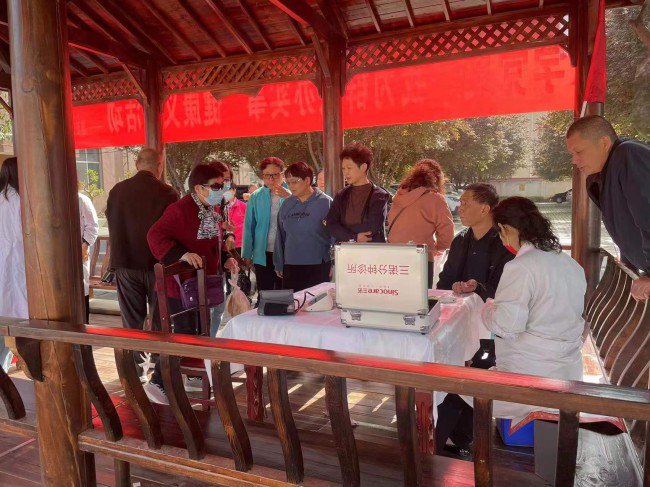 活动开始前,正能物业公司工作人员精心布置了现场,及时跟进活动各项流程。活动现场,在工作人员的有序引导下,居民井然有序的排队进行健康义诊。本次活动为小区居民提供肺功能筛查、睡眠检测、血氧饱和度检测、测血压,血糖检测等免费服务,专家与居民们零距离沟通交流健康疑惑,现场对居民们的健康问题进行详细讲解并给予专业治疗建议,义诊现场气氛热烈,前来寻医问诊的居民络绎不绝,受到小区居民们的一致好评。